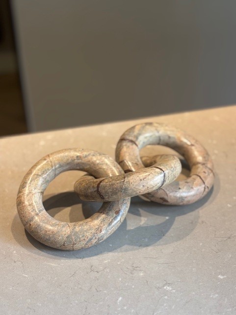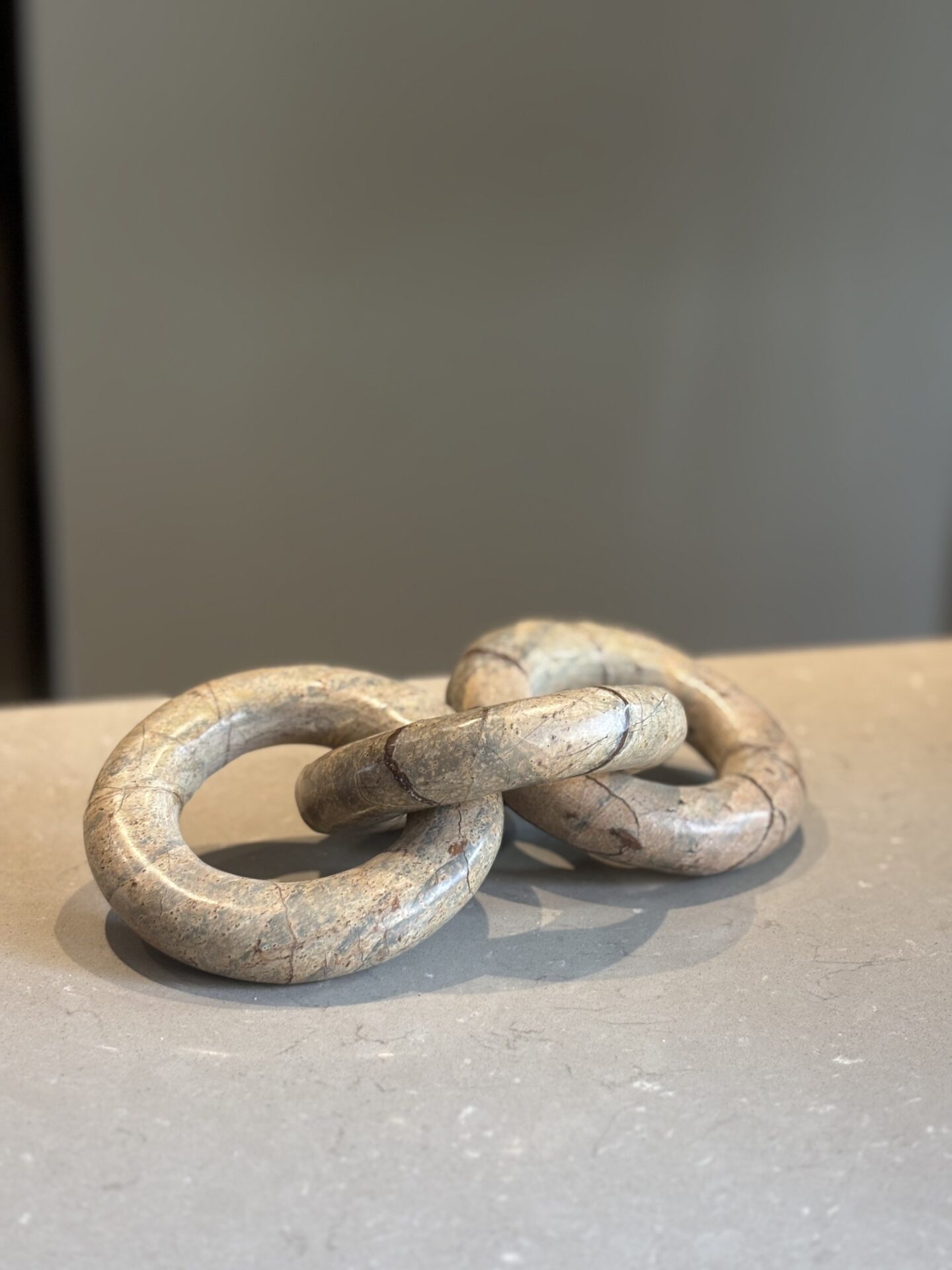 De schakelvorm staat symbool voor verbondenheid, eenheid en oneindigheid. In combinatie met het duurzame karakter van marmer krijgt dit decoratiestuk een extra betekenisvolle waarde. Ideaal als symbool voor familiebanden, vriendschap of liefde – en ook geschikt als bijzonder cadeau voor een huwelijk of jubileum.