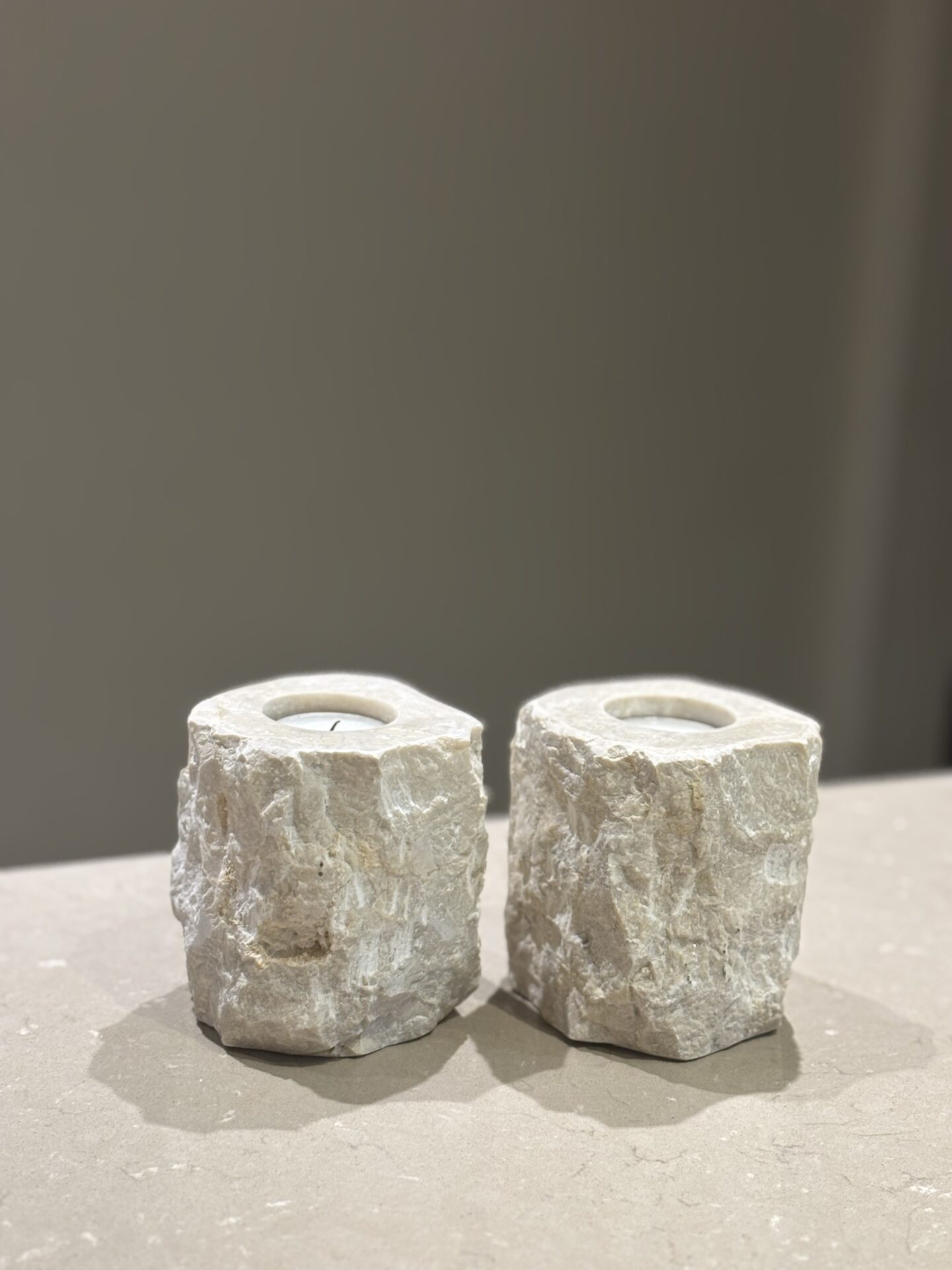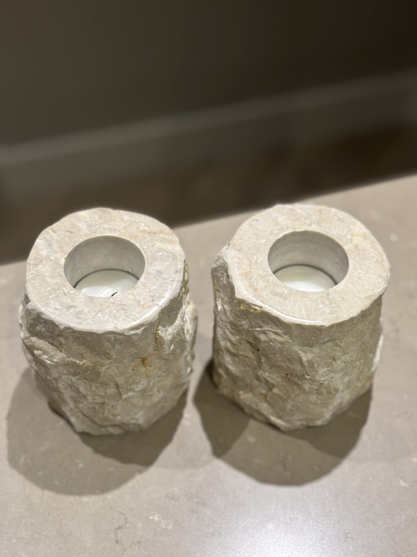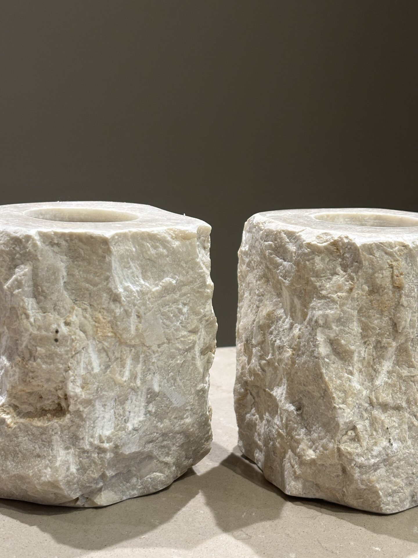 Deze ruwe marmeren waxinelichthouders zijn er in 2 soorten, de ene heeft een dieper gat dan de andere.