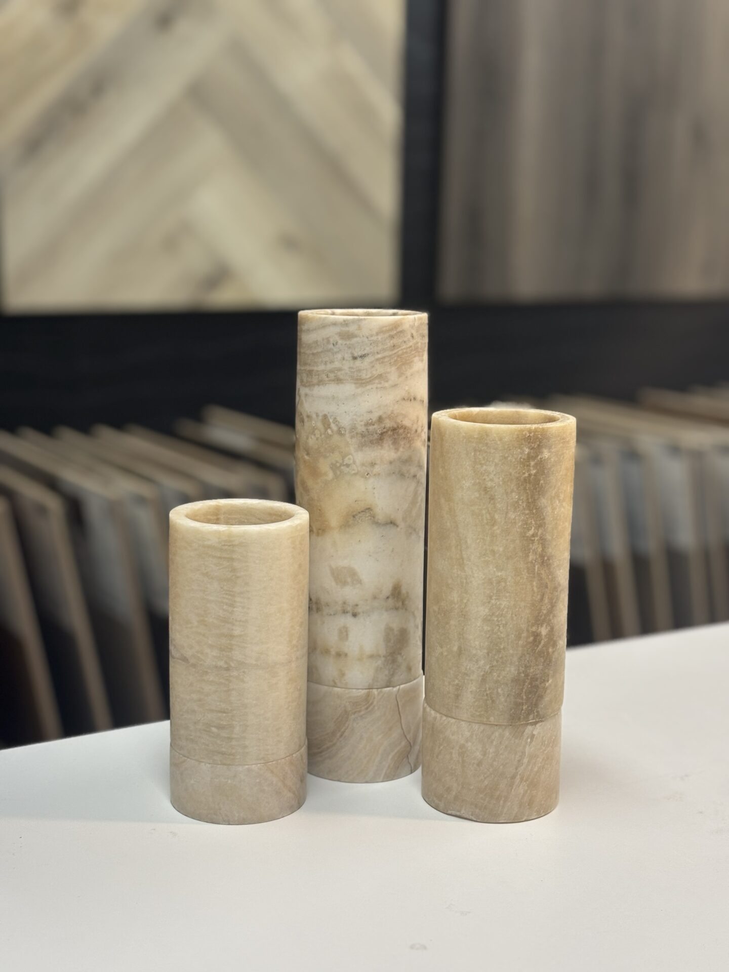 Deze waxinelichthouders gemaakt van onyx een natuurlijke, minerale doorschijnende steen.