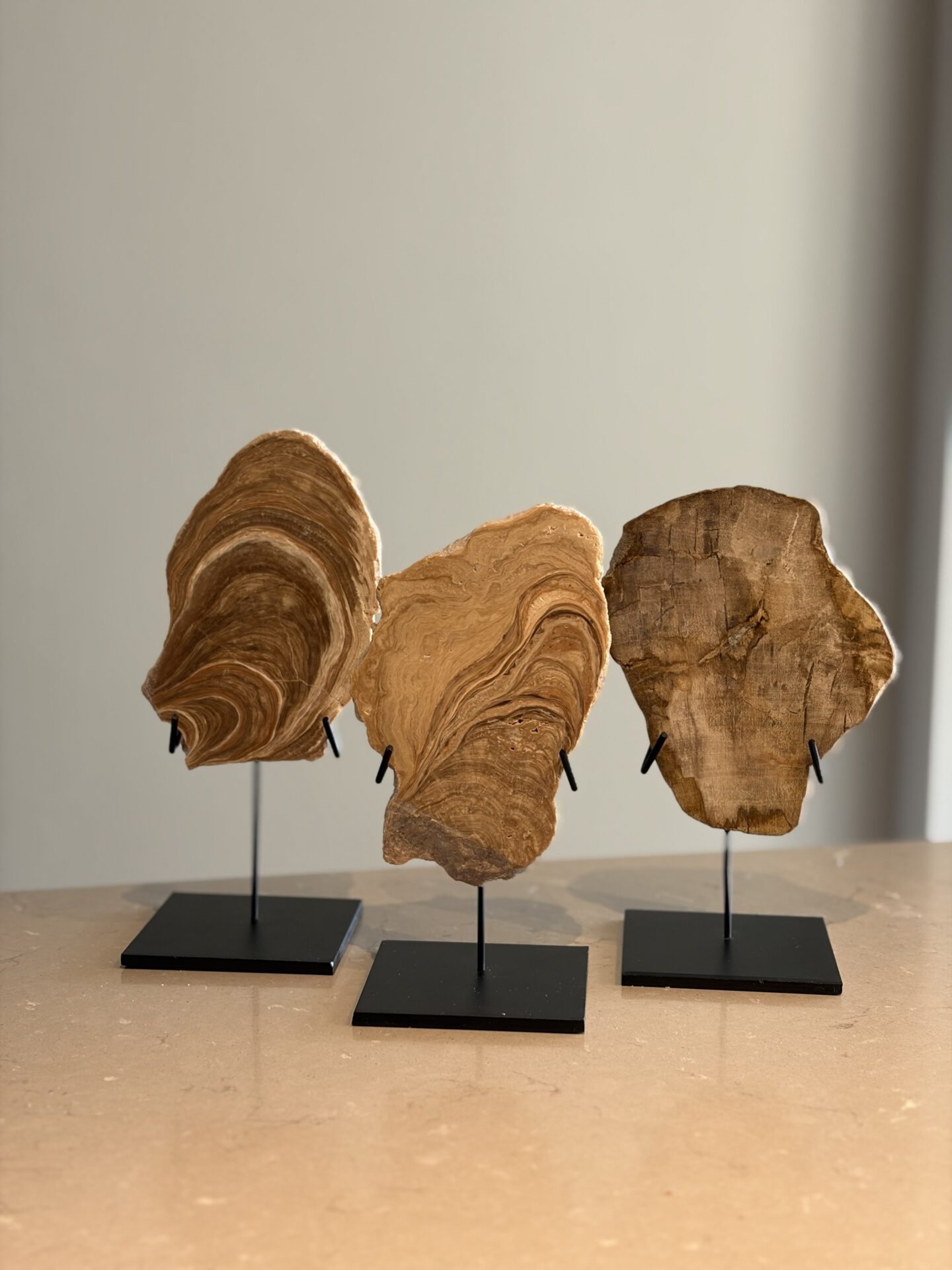 Links H 20 cm x B 8 cm, Midden H 21 cm x B 8 cm, Rechts H 19 x B 11,5 cm